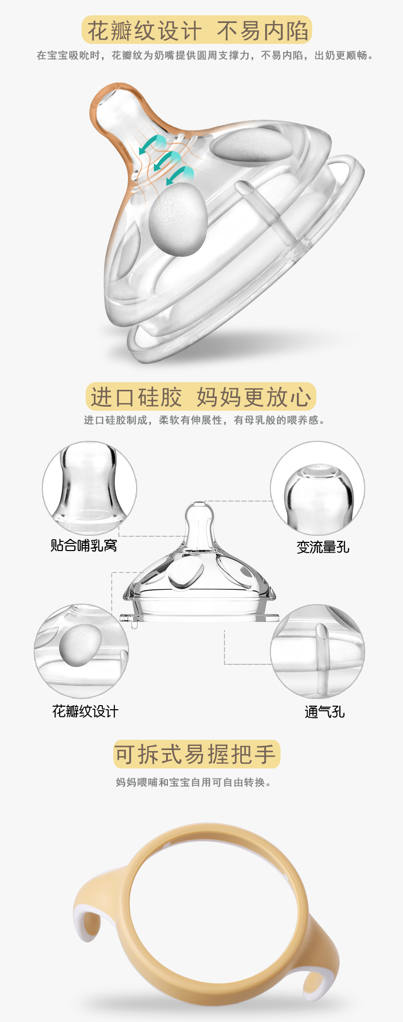 顏 色:都市灰/典雅黃/簡約白 材 質:PPSU(奶瓶瓶身呈淡茶色)